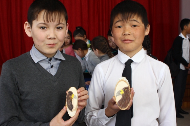 А вчера побывали в Кырлыкской школе Усть-Канского района, где состоялась встреча с участниками Клуба друзей Катунского заповедника «Надежда». Мероприятие началось с поздравления членов клуба, которые недавно стали призерами финала Всероссийского фестиваля творческих открытий и инициатив «Леонардо» в г.Москва. Продолжением встречи стало тематическое занятие «Пернатые хищники Алтая», в ходе которого юные экологи познакомились с хищными птицами, обитающими в Усть-Коксинском и Усть-Канском районах. После полученные знания ребята применили на мастер-классе, где им нужно было на спилах нарисовать хищных птиц с учетом их внешних особенностей.